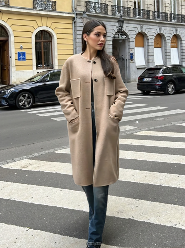 Our double-faced wool coats are hand-sewn to deliver unmatched elegance and quality.